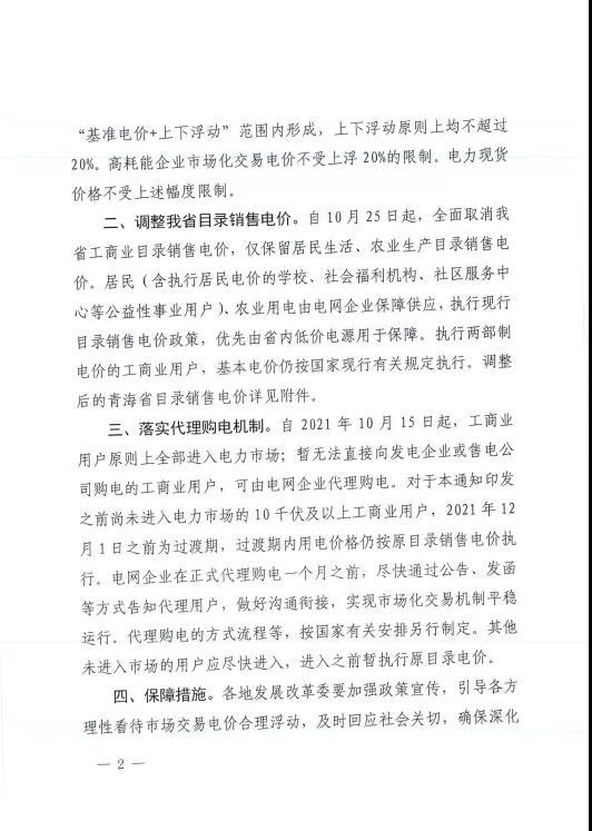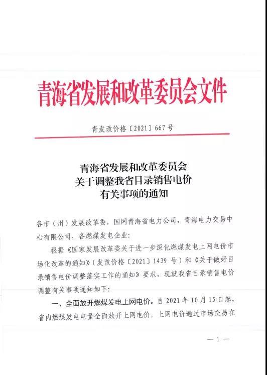 青海:關于調(diào)整我省目錄銷售電價有關事項的通知