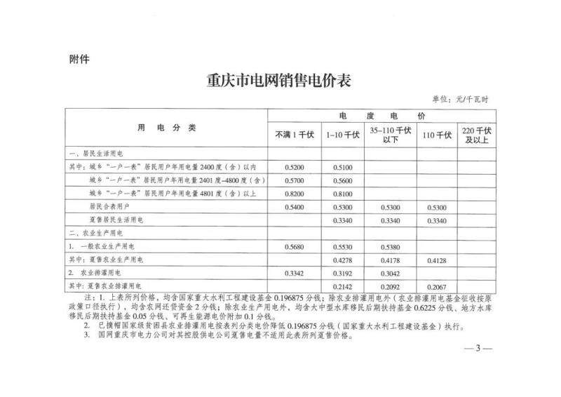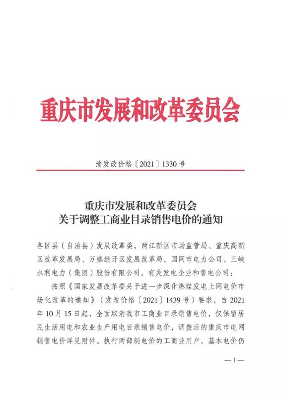 重慶:調(diào)整工商業(yè)目錄銷售電價