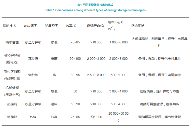 不同類型的儲能在響應(yīng)速度、能量密度、效率、壽命、經(jīng)濟成本、潛在應(yīng)用上有所差異,歸納如表1。儲能依靠其物理特性,在電力系統(tǒng)中具備諸多潛在價值,可在市場上提供相應(yīng)的標(biāo)的。