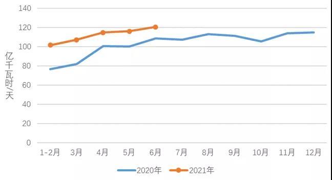 6月份,全國制造業(yè)用電量3615億千瓦時,同比增長9.6%,增速比上年同期提高4.9個百分點;制造業(yè)日均用電量120.5億千瓦時/天,比上年同期增加11.9億千瓦時/天。其中,四大高載能行業(yè)用電量合計1937億千瓦時,同比增長6.5%,增速比上年同期提高2.5個百分點;高技術(shù)及裝備制造業(yè)用電量787億千瓦時,同比增長13.3%,增速比上年同期提高4.9個百分點;消費品制造業(yè)用電量493億千瓦時,同比增長12.7%,增速比上年同期提高10.8個百分點;其他制造業(yè)行業(yè)用電量398億千瓦時,同比增長15.0%,增速比上年同期提高9.7個百分點。
