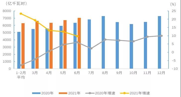 1-6月,全國全社會用電量39339億千瓦時,同比增長16.2%,其中,6月份全國全社會用電量7033億千瓦時,同比增長9.8%。