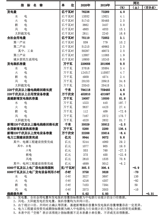 2020年全國(guó)電力工業(yè)統(tǒng)計(jì)快報(bào)一覽表