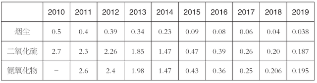 表10 2010~2019年電力行業(yè)排放績(jī)效(單位:克/千瓦時(shí))