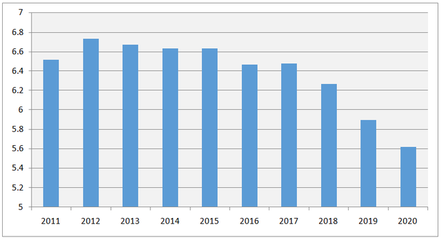 圖22 2011~2020年全國(guó)線損率情況(單位:%)