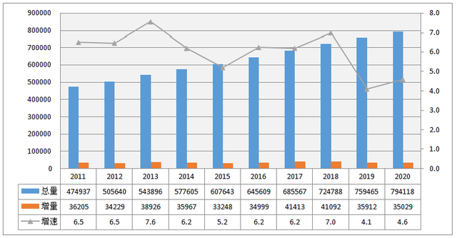 注:2020年數(shù)據(jù)來(lái)自于中電聯(lián)快報(bào),其他來(lái)自中電聯(lián)歷年電力工業(yè)統(tǒng)計(jì)數(shù)據(jù),增速系計(jì)算所得,如無(wú)特殊標(biāo)注,下同。