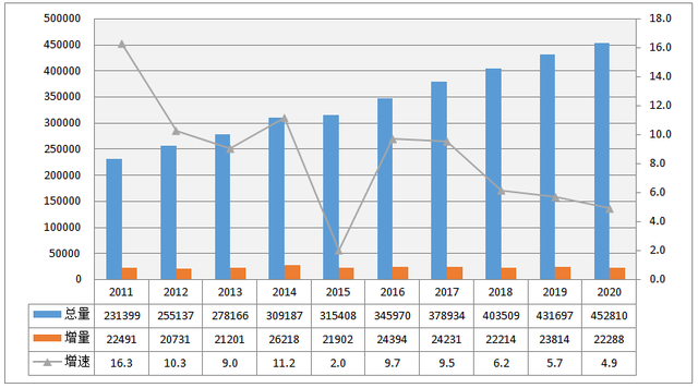 圖4 2011~2020年全國(guó)電力裝機(jī)及增速情況(單位:萬(wàn)千瓦,%)