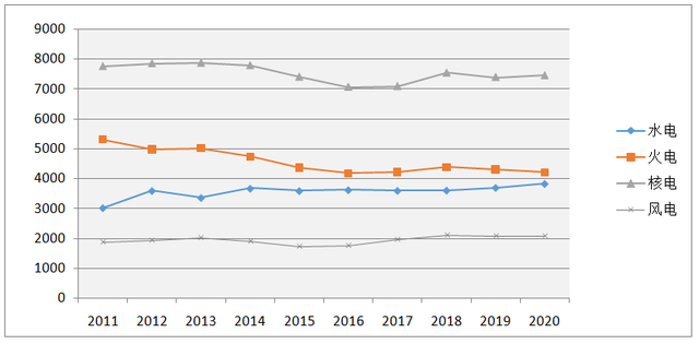 圖20 2011~2020年不同電源投資情況(單位:億元)