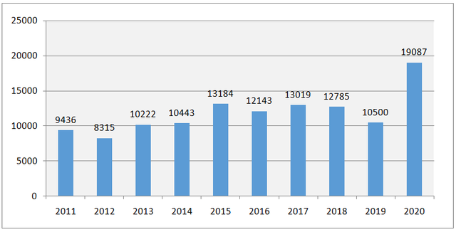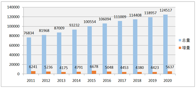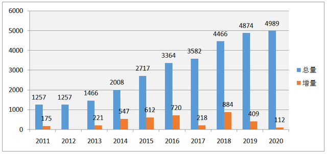 圖7 2011~2020年全國(guó)新增電力裝機(jī)容量情況(單位:萬(wàn)千瓦)