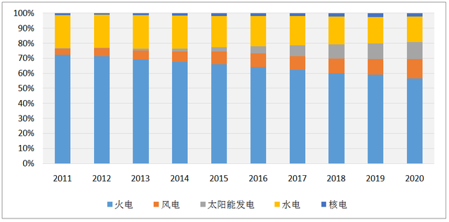 圖6 2011~2020年全國(guó)電力裝機(jī)結(jié)構(gòu)(單位:%)
