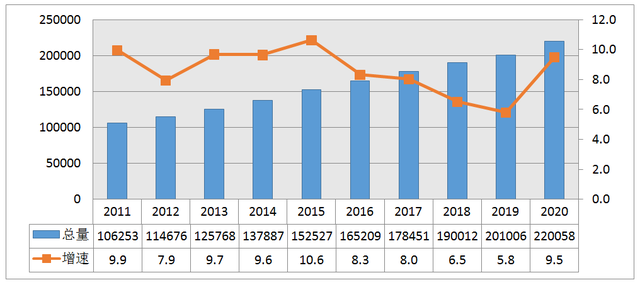2020年是新中國(guó)歷史上極不平凡的一年。我國(guó)經(jīng)濟(jì)運(yùn)行逐季改善、逐步恢復(fù)常態(tài),在全球主要經(jīng)濟(jì)體中唯一實(shí)現(xiàn)經(jīng)濟(jì)正增長(zhǎng),脫貧攻堅(jiān)戰(zhàn)取得全面勝利,決勝全面建成小康社會(huì)取得決定性成就。我國(guó)經(jīng)濟(jì)總量首次突破100萬(wàn)億元大關(guān),國(guó)內(nèi)生產(chǎn)總值達(dá)到1015986億元,比上年增長(zhǎng)2.3%。