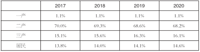 表2 2017~2020年全社會(huì)用電結(jié)構(gòu)