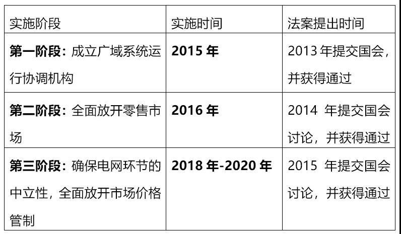 2011年福島核電事故后,日本提出新一輪電力改革思路框架;2013年,日本內(nèi)閣通過(guò)新一輪電力改革方案。2015年,本參議院通過(guò)了新的《電氣事業(yè)法》修正案,提出改革方案第三階段內(nèi)容。三個(gè)階段的改革方案全部制定完成,并上升為法律。