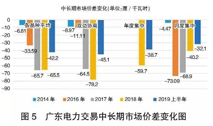 2019年市場規(guī)模放大到2000億千瓦時,但雙邊協(xié)商規(guī)模卻只有1200億千瓦時,供需比仍設(shè)置為1.1。在市場普遍不看好月度競價市場價差的心態(tài)下,雙邊協(xié)商市場的簽約需求大幅提高,市場實(shí)際形成了供不應(yīng)求的局面,最終市場價差一路收窄,并在月競階段維持到-30厘/千瓦時左右的穩(wěn)定局面;上半年整體平均價差僅為-42.2厘/千瓦時。