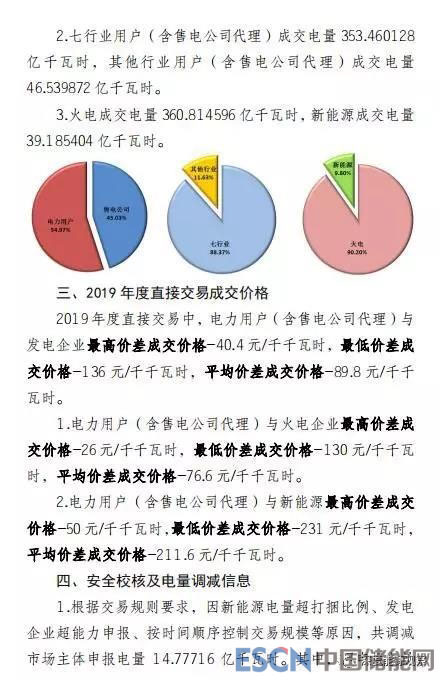 2019年度直接交易中,電力用戶(含售電公司代理)與發(fā)電企業(yè)最高價差成交價格-40.4元/千千瓦時,最低價差成交價格-136元/千千瓦時,平均價差成交價格-89.8元/千千瓦時。