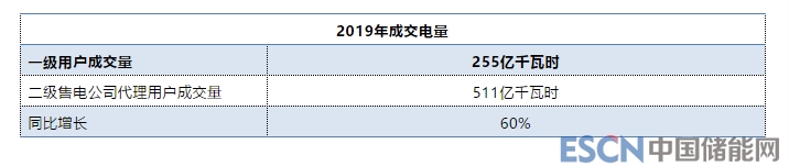 本次2019年度交易成交電量已超過2018年全年直接交易成交電量,其中一級用戶成交電量255億千瓦時,通過售電公司代理的二級用戶成交電量511億千瓦時,同比增長60%。