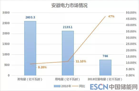 近期,安徽電力市場完成2019年度交易,成交電量達到766億千瓦時,較上年(2018年安徽省年度交易電量520億千瓦時)增長了246億千瓦時,同比增長47%。