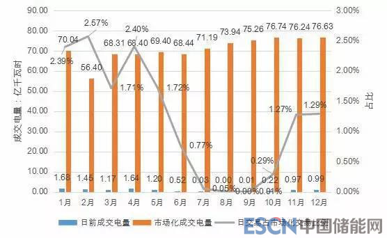 2018年具體分配比例為:年度46.78%、月度52.06%、日前交易電量為1.16%。