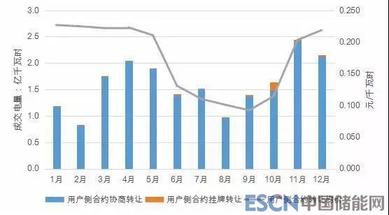 圖 2-20:2018 年事后合約轉(zhuǎn)讓交易成交電量、電價統(tǒng)計(用戶側(cè))