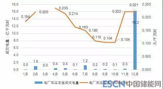 圖 2-17:2018 年雙邊協(xié)商互保交易成交電量、電價統(tǒng)計(電廠側(cè))