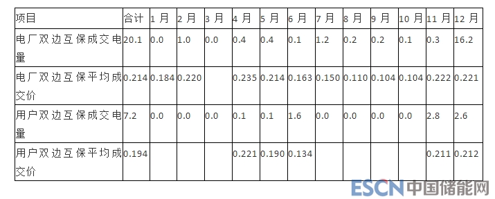 為幫助市場主體降低偏差,在每月月度交易結(jié)束后,市場主體可根據(jù)最新發(fā)、用電計劃,當一方無法履行合同時,可以向交易中心提交互保申請,經(jīng)審核通過后,電廠之間或電力用戶(售電公司)之間能針對已簽訂的雙邊合同進行互保交易。2018年共有17家電廠作為出讓方,28家電廠作為受讓方參與電廠雙邊互保交易,成交電量20.07億千瓦時,平均成交價每千瓦時 0.21372元。用戶側(cè)共11家電力用戶(售電公司)作為出讓方,24家電力用戶(售電公司)作為受讓方參與用戶雙邊互保交易,成交電量7.18億千瓦時,平均成交價每千瓦時 0.19426 元。