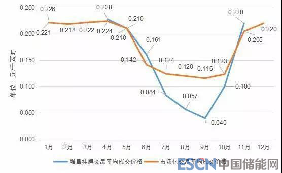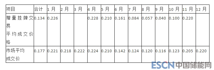 表 2-17:2018 年月度增量掛牌交易成交電價統(tǒng)計(單位:元/千瓦時)
