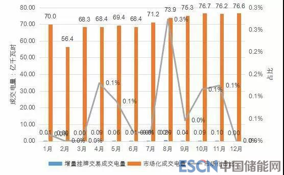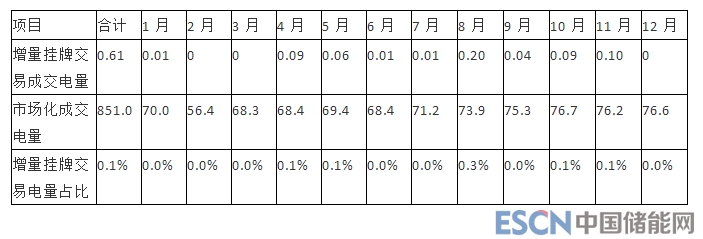 表 2-16:2018 年月度增量掛牌交易成交電量統(tǒng)計(單位:億千瓦時)
