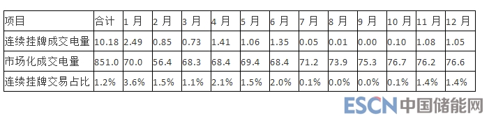 表 2-14:2018 年月度連續(xù)掛牌交易成交電量統(tǒng)計(單位:億千瓦時)