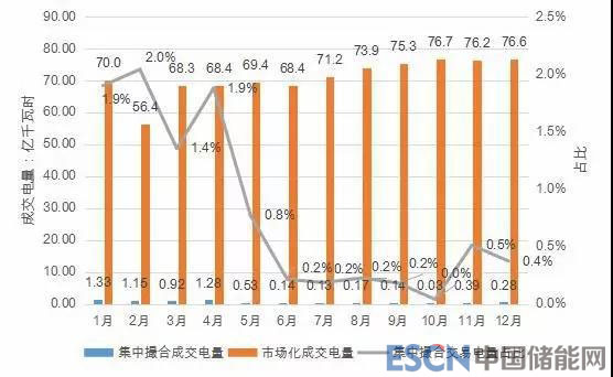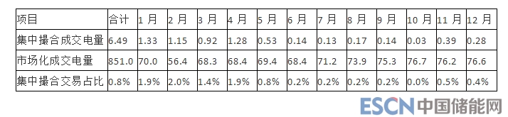 2018年,由于大部分電量都通過雙邊協(xié)商的方式成交,集中市場整體成交規(guī)模減小。月度集中撮合交易中,購方共有272家電力用戶(售電公司)參與申報,累計申報電量20億千瓦時;售方累計申報電量396.48億千瓦時。全年集中撮合交易累計成交電量6.49億千瓦時,占省內(nèi)市場化成交電量的0.76%。