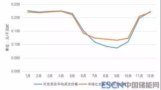 由于雙邊協(xié)商補充交易為每月最后開展的月度直接交易,價格全年來看波動幅度較大,受集中市場成交量價信息和省內(nèi)供求關系影響,呈現(xiàn)出汛期均價低于年度、月度雙邊協(xié)商交易均價的特點。從全年來看,雙邊協(xié)商補充交易最低成交價為9月的每千瓦時0.08685元,最高成交價為12月的每千瓦時0.22274元,全年售方平均成交價為0.19309元,處于雙邊協(xié)商交易均價與集中市場均價之間。