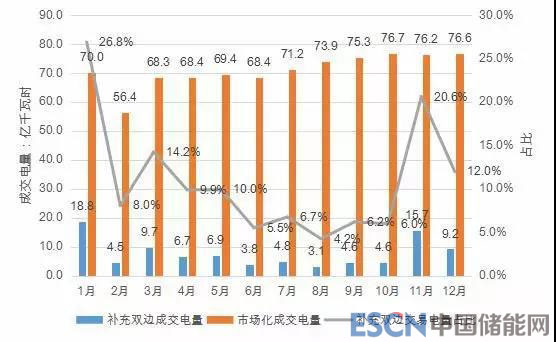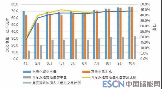 2018年雙邊市場共成交電量823.84億千瓦時,占市場總成交電量的96.81%,部分用戶的全部電量都是通過雙邊協(xié)商交易購買。在實際執(zhí)行過程中,由于預測偏差、生產(chǎn)計劃 調(diào)整、設備故障以及其他一些不可預見的因素,導致用戶無 法完成雙邊協(xié)商交易電量,從而被考核。2018 年共有 12 家 用戶因雙邊協(xié)商交易電量完成比例低而被取消雙邊交易權限。電廠側(cè)2018年先結(jié)算市場化交易電量,雙邊交易量過 大將擠占優(yōu)先電量,導致優(yōu)先電量在當月無法完成而向后續(xù) 月份滾動,對其他發(fā)電企業(yè)和整體平衡也造成一定影響。