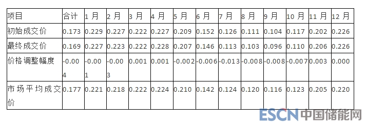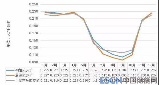 月度雙邊協(xié)商交易與年度雙邊協(xié)商交易類似,在集中市場交易結(jié)束、交割月之前,可以對已簽訂的雙邊合約價格進行調(diào)整。通過實行“基準價格+浮動機制”的價格調(diào)整機制,為市場主體提供了一種科學的價格避險手段,在防范市場風險的同時,不斷提高市場的資源配置效率。2018年,月度雙邊協(xié)商交易售方初成交價每千瓦時0.17327元,最終成交價每千瓦時0.16911元,較初始電價每千瓦時降低 0.416分。
