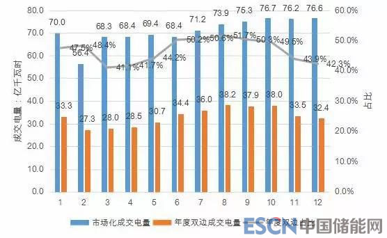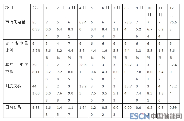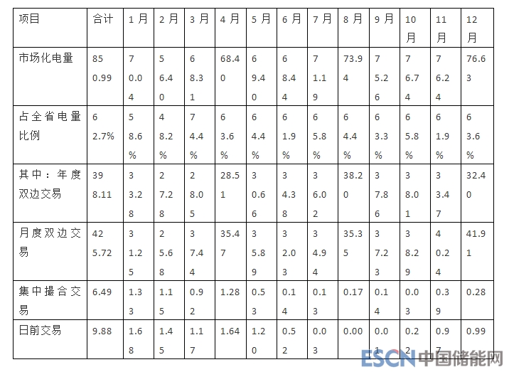 除部分電量較小、對電價不敏感的小微用戶自主選擇暫不參與交易外,其他大工業(yè)用戶均參與了電力市場化交易,全年共成交電量850.99億千瓦時,同比增長21.03%,占全省大工業(yè)用電量的94.67%,占全部用電量的62.74%。