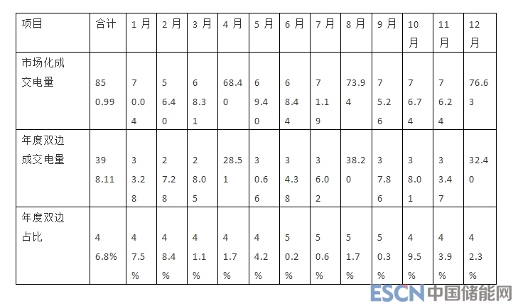 年度主要開展雙邊協(xié)商交易,成交電量398.11億千瓦時,平均成交價每千瓦時0.17851元。