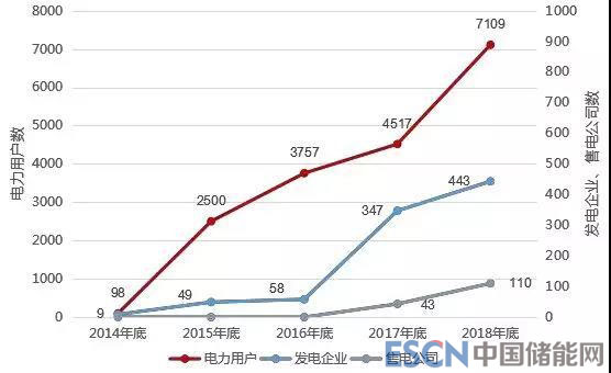 在開放的市場環(huán)境下,截至2018年12月底,共7662家市場主體完成市場準入。電廠方面,共 443家電廠完成市場準入,其中,水電202家,風電153 家,光伏77 家,火電11 家,合計裝機7366.4萬千瓦;用戶方面,共7109家電力用戶完成市場準入;售電公司方面,共110家售電公司完成市場準入。
