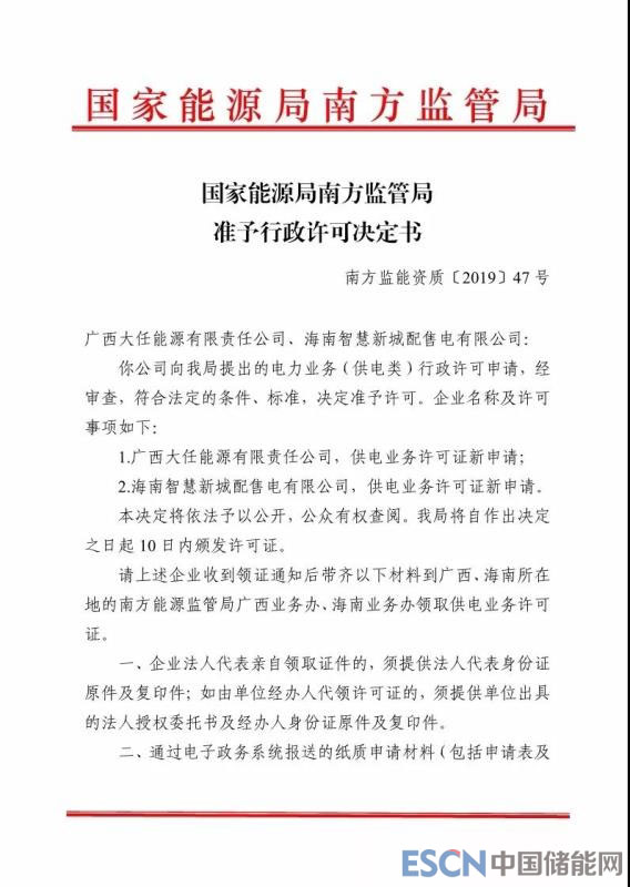 南方兩企業(yè)獲供電業(yè)務(wù)許可證:廣西大任、海南智慧新城