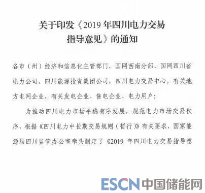 《2019年四川電力交易指導(dǎo)意見(jiàn)》