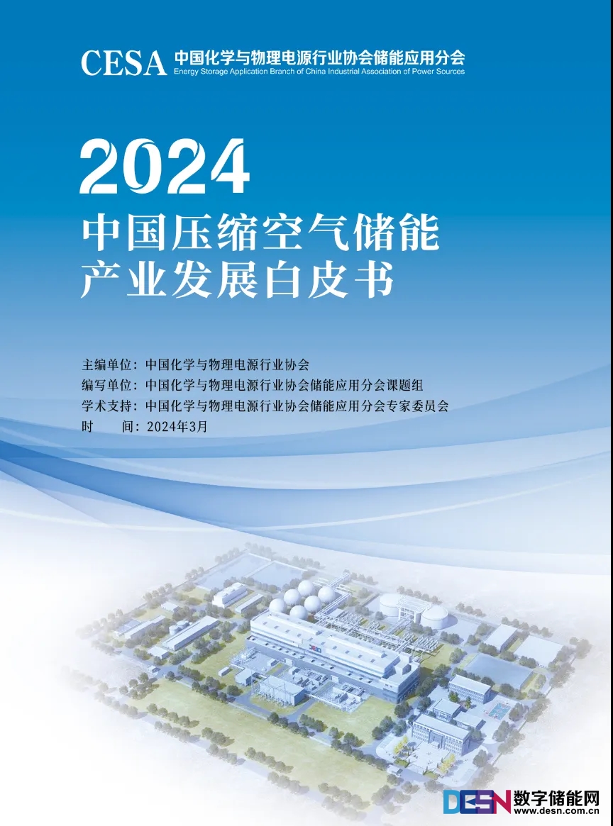 其中,《2024中國壓縮空氣儲能產(chǎn)業(yè)發(fā)展白皮書》(以下簡稱白皮書)由中國化學與物理電源行業(yè)協(xié)會主編,中國化學與物理電源行業(yè)協(xié)會儲能應用分會課題組編寫,中國化學與物理電源行業(yè)協(xié)會能能應用分會專家委員會提供學術支持。