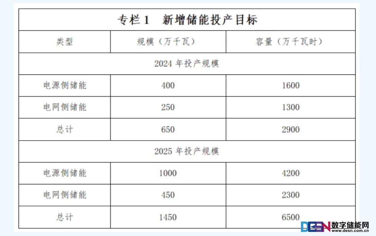 在已批復(fù)新型儲(chǔ)能項(xiàng)目的基礎(chǔ)上,2024年新開工1000萬千瓦新型儲(chǔ)能,建成投產(chǎn)650萬千瓦/2900萬千瓦時(shí),2025年再新開工新型儲(chǔ)能裝機(jī)1100萬千瓦,建成投產(chǎn)1450萬千瓦/6500萬千瓦時(shí)。
