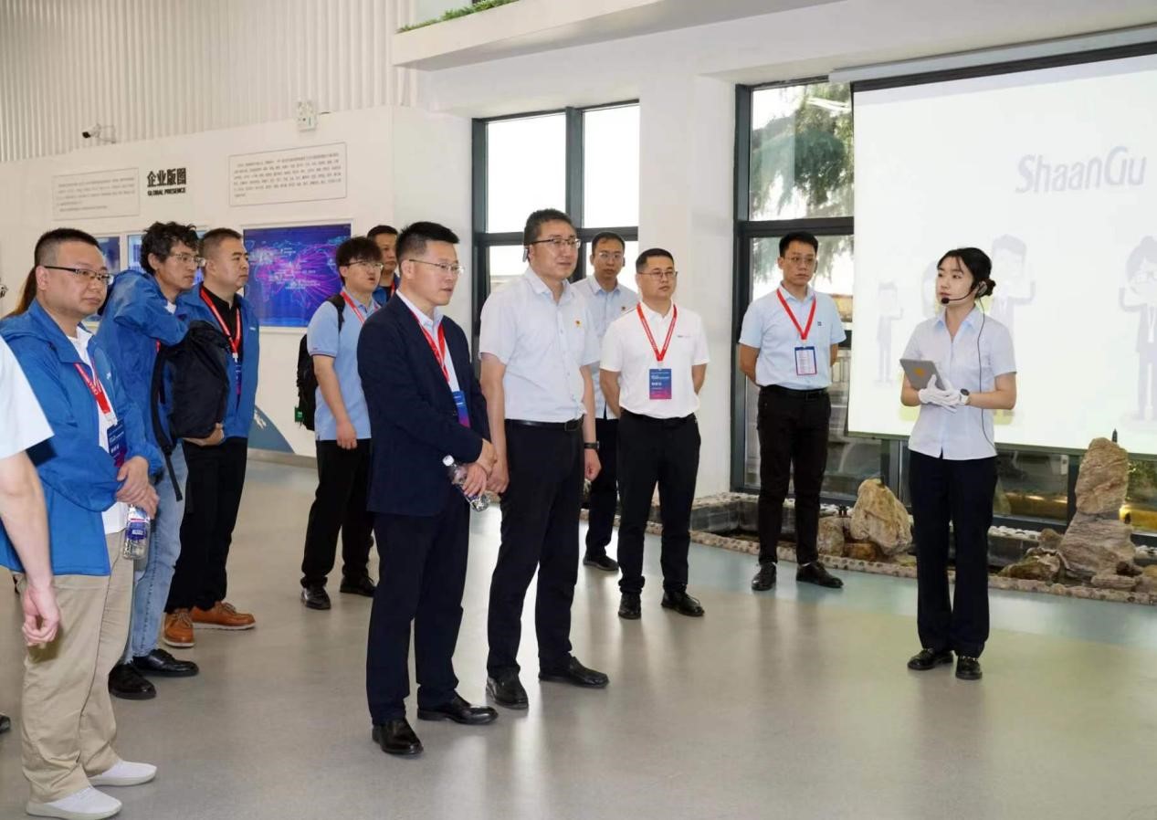 圖注:陜西鼓風(fēng)機(jī)(集團(tuán))有限公司黨委委員、副總經(jīng)理張昇(左四)與調(diào)研專家組合影