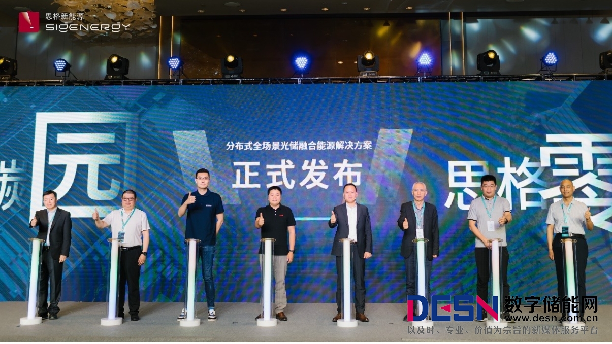 發(fā)布會上,思格總裁張先淼邀請多位行業(yè)專家、學(xué)者、行業(yè)協(xié)會嘉賓、企業(yè)伙伴上臺,共同發(fā)布“思格零碳家”和“思格零碳園”能源解決方案。