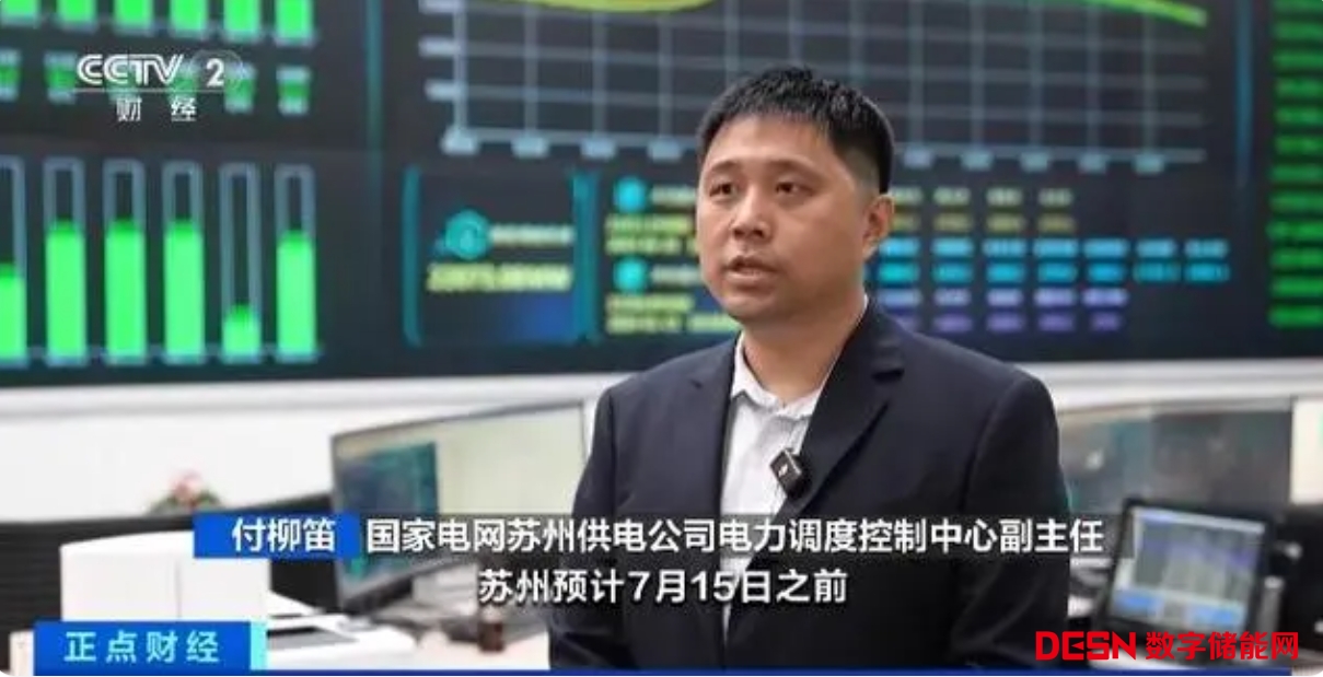 國(guó)家電網(wǎng)蘇州供電公司電力調(diào)度控制中心副主任 付柳笛:蘇州預(yù)計(jì)7月15日前,投運(yùn)7個(gè)獨(dú)立新型儲(chǔ)能項(xiàng)目,合計(jì)功率42萬千瓦,容量達(dá)83萬千瓦時(shí),總裝機(jī)容量相比去年提高了4倍。