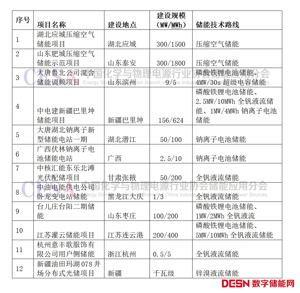 今年來,新型儲能的多元化技術(shù)路線全面開花,除磷酸鐵鋰電池儲能外,包括壓縮空氣儲能、全釩液流儲能、鈉離子電池儲能等多技術(shù)路線儲能項目并網(wǎng)投運(yùn),典型項目如下表所示。