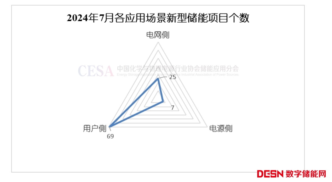 圖2-2 2024年7月各應(yīng)用場(chǎng)景新型儲(chǔ)能項(xiàng)目個(gè)數(shù)分布圖