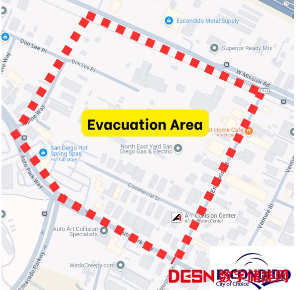 加利福尼亞州埃斯孔迪多疏散區(qū)地圖