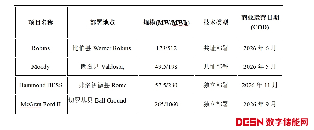2024年8月,在實(shí)行了“全面”供應(yīng)鏈需求建議書(RFP)流程之后,Georgia Power公司與Burns & McDonnell公司就Robins和McGrau Ford電池儲(chǔ)能項(xiàng)目簽訂了EPC協(xié)議,并與Crowder 公司就Moody電池儲(chǔ)能項(xiàng)目和Hammond電池儲(chǔ)能項(xiàng)目簽訂了EPC協(xié)議。
