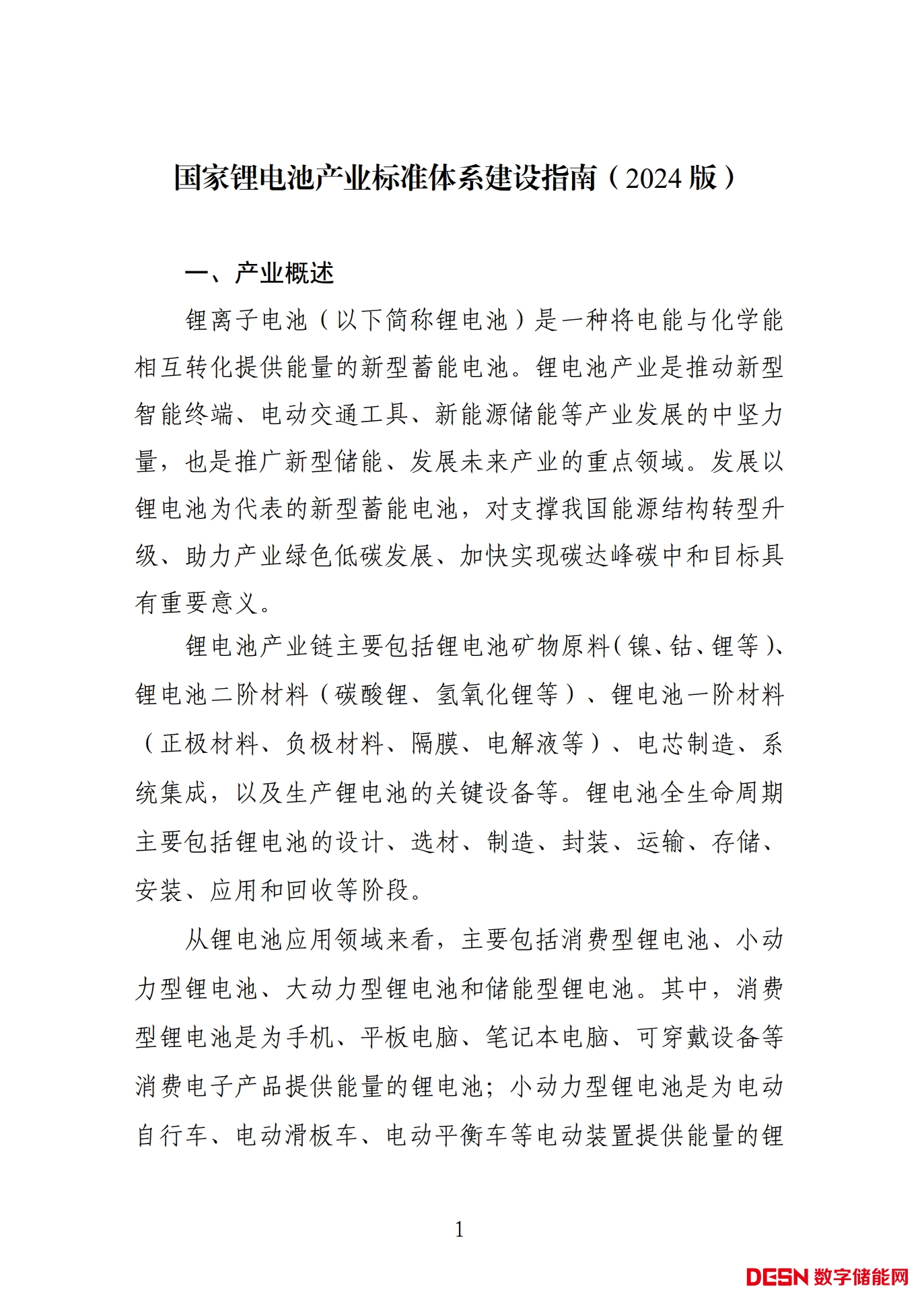 國家鋰電池產(chǎn)業(yè)標準體系建設指南(2024 版)