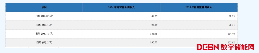 (3) 當前日均充放次數(shù)為0.3~0.5次,實際部分項目并未受電網(wǎng)調(diào)度(全部折算為2小時的配儲,取0.5次),取日均放電次數(shù)0.25次;