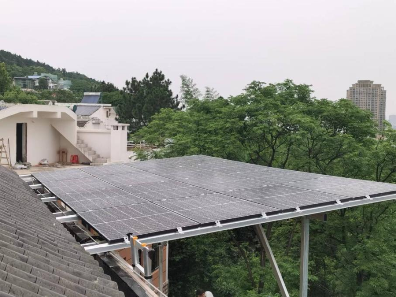 光伏組件安裝在別墅的陽(yáng)光房頂,采用BIPV的組件安裝方式。光伏系統(tǒng)與儲(chǔ)能系統(tǒng)共用一臺(tái)逆變器,逆變器在工作過程中,對(duì)戶用微電網(wǎng)系統(tǒng)進(jìn)行監(jiān)測(cè)、控制和通信,以保證逆變電壓滿足指標(biāo)要求,智能化選擇并調(diào)整供電模式,實(shí)現(xiàn)經(jīng)濟(jì)可靠的戶用供電。