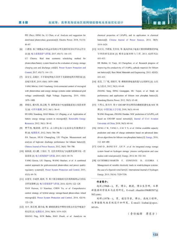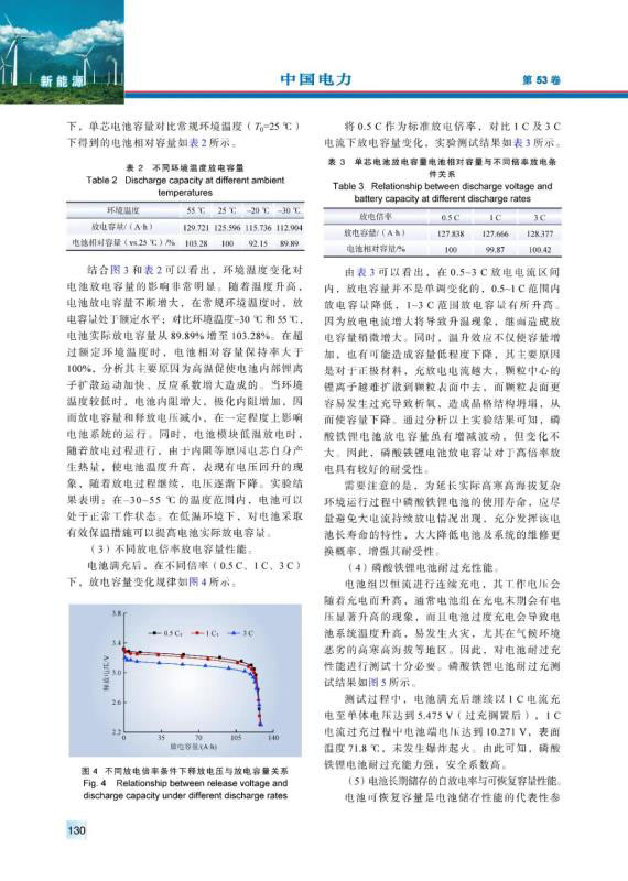 通過對高寒高海拔地區(qū)微電網(wǎng)儲能選用的磷酸鐵鋰電池進行性能測試,分析了環(huán)境溫度對電池充放電性能、循環(huán)壽命、系統(tǒng)容量及安全性能等重要參數(shù)的影響。結(jié)果表明:磷酸鐵鋰電池具有循環(huán)壽命長、對高倍率充放電耐受性強,具有耐用性與安全系數(shù)高等優(yōu)點;環(huán)境溫度對電池性能影響顯著,低溫下放電容量明顯下降,高倍率充放電會縮短電池循環(huán)壽命。此外,結(jié)合高寒高海拔地區(qū)的氣候特征對鋰電池儲能系統(tǒng)進行針對性的優(yōu)化設(shè)計,并且在惡劣環(huán)境下對系統(tǒng)的可靠性進行了實驗驗證。研究結(jié)果可對磷酸鐵鋰電池在高寒高海拔地區(qū)的應(yīng)用提供技術(shù)支撐。