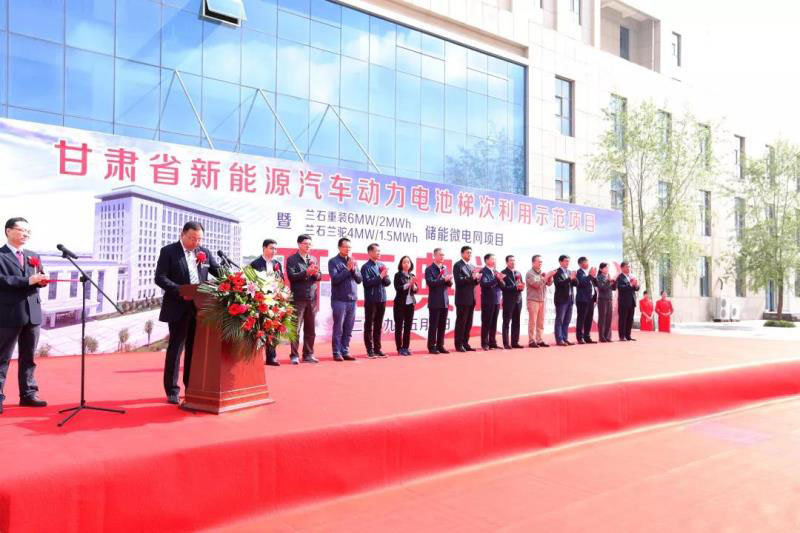 甘肅省工信廳副廳長程學(xué)欽宣布甘肅省新能源汽車動力電池梯次利用示范項目暨蘭石重裝和蘭石蘭駝儲能微電網(wǎng)項目正式開工。